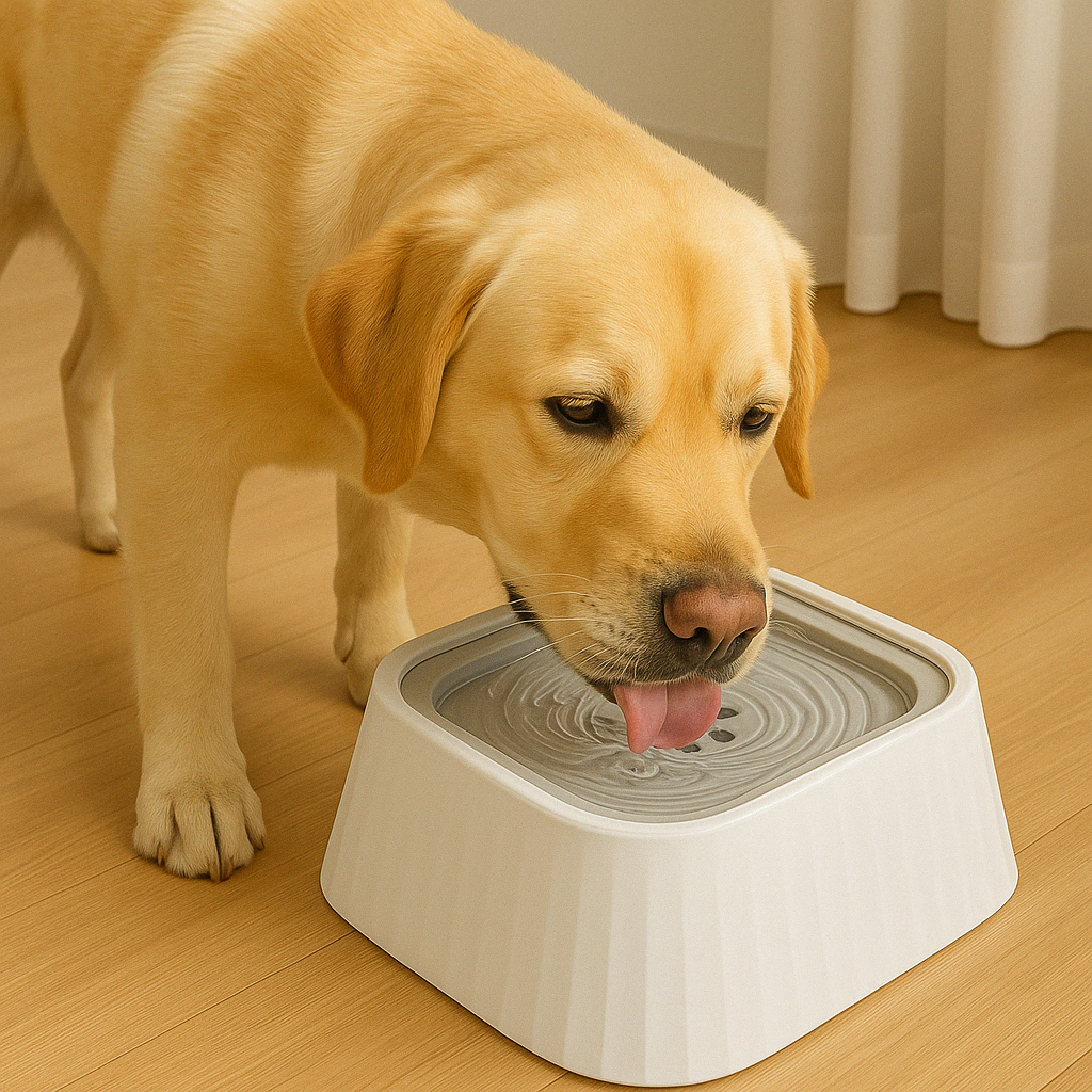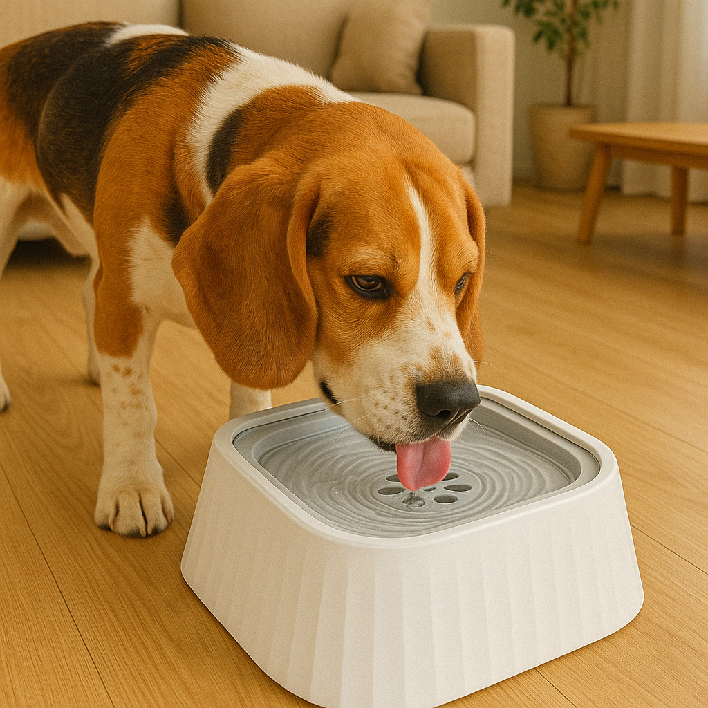 Mød No Splash™ – den smarte anti-spild vandskål, der er designet til at holde dit gulv tørt, rent og pænt – selv når din hund drikker ivrigt.